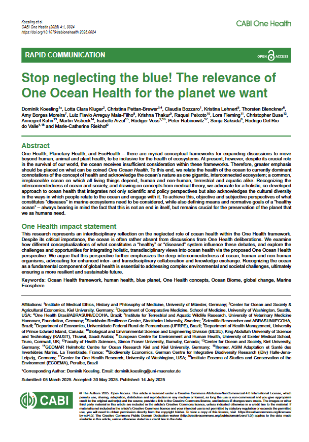 Stop neglecting the blue! The relevance ofOne Ocean Health for the planet we want